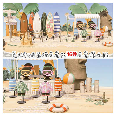 Switch动物森友会夏日沙滩派对冲浪板装饰16套潜水服潜水镜装饰 虎窝淘